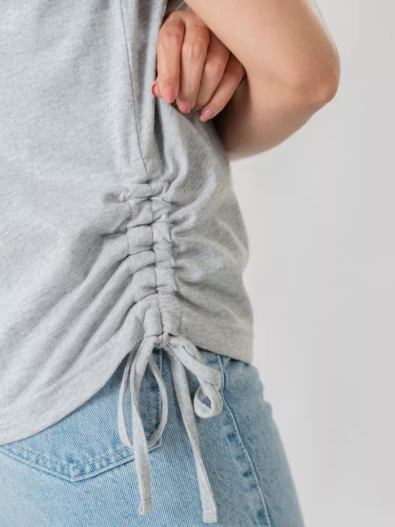 Elevate your summer style with the Arle Drawstring Side Top! Optimize your look with this cool casual top that features convenient drawstrings on the side seams. Effortlessly adjust the fit to your liking, and let your unique style shine through. Perfect for any occasion.