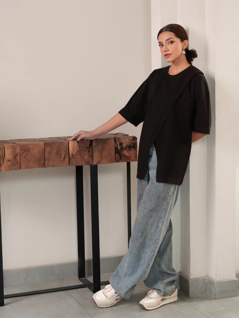 Stay effortlessly cool in the Cleo Top. This casual tee features a playful split hem and an oversized, boxy fit that adds a trendy edge to your look. Perfect for pairing with your favorite denim or pants, it’s the go-to style for fashion-forward fun.