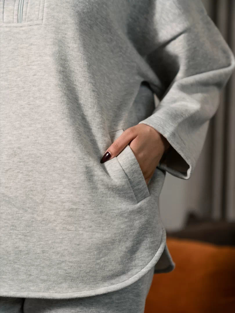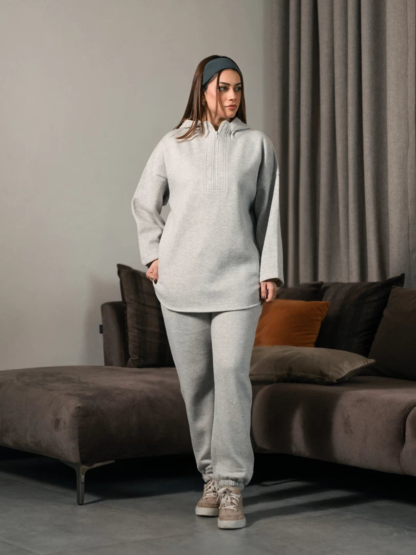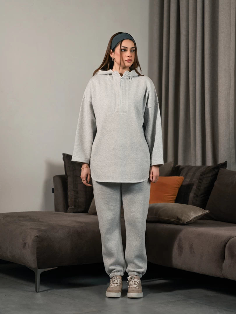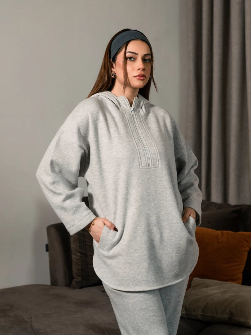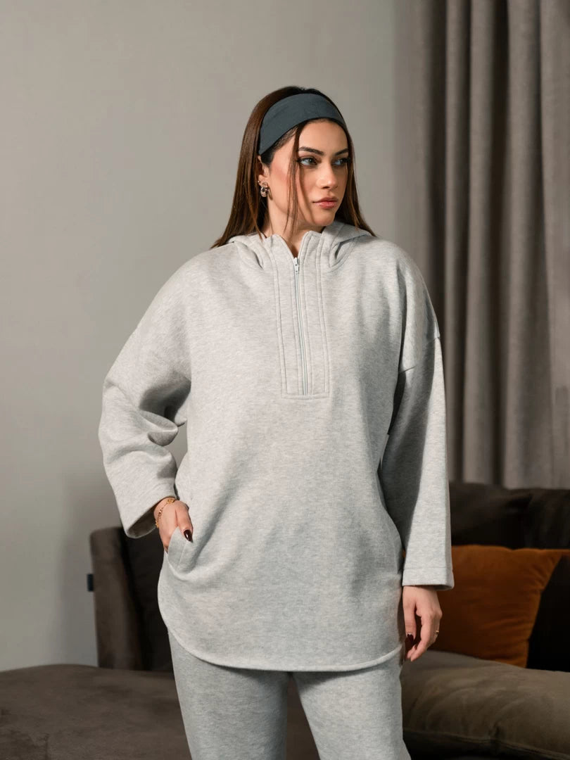 Stay stylish and cozy all season long with our Darya Oversized Hoodie Matching Set! This sleek set features front velt pockets, an extended zipper and a unique hood. The super soft fabric and drop shoulders provide comfort while the long length and curved hem add a touch of style.