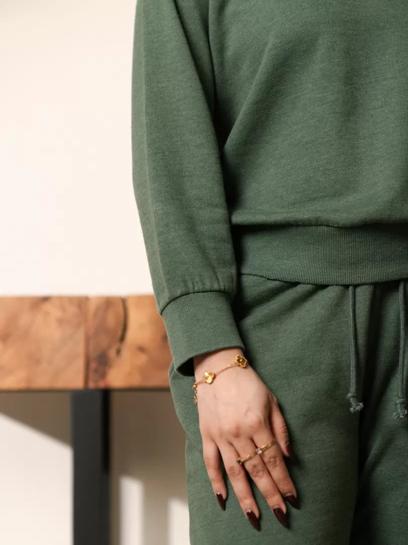 Stay cozy and stylish this winter with our Kiwi Sweat Matching Set. Each set is uniquely garment dyed, ensuring a one-of-a-kind look. The body-hugging fit keeps you warm, while the soft and comfortable sweatshirt and sweatpants add an extra layer of luxury. Perfect for lounging or running errands, this set is a must-have for any fashion-forward individual.