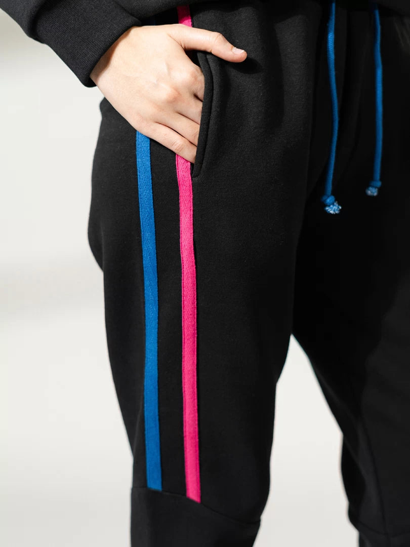 Stay warm & stylish with Michi Athletic Sweat Set! This cozy fleece set features two-color tape details for a sporty yet unique look. It's comfortable and flattering, ensuring you look and feel your best.