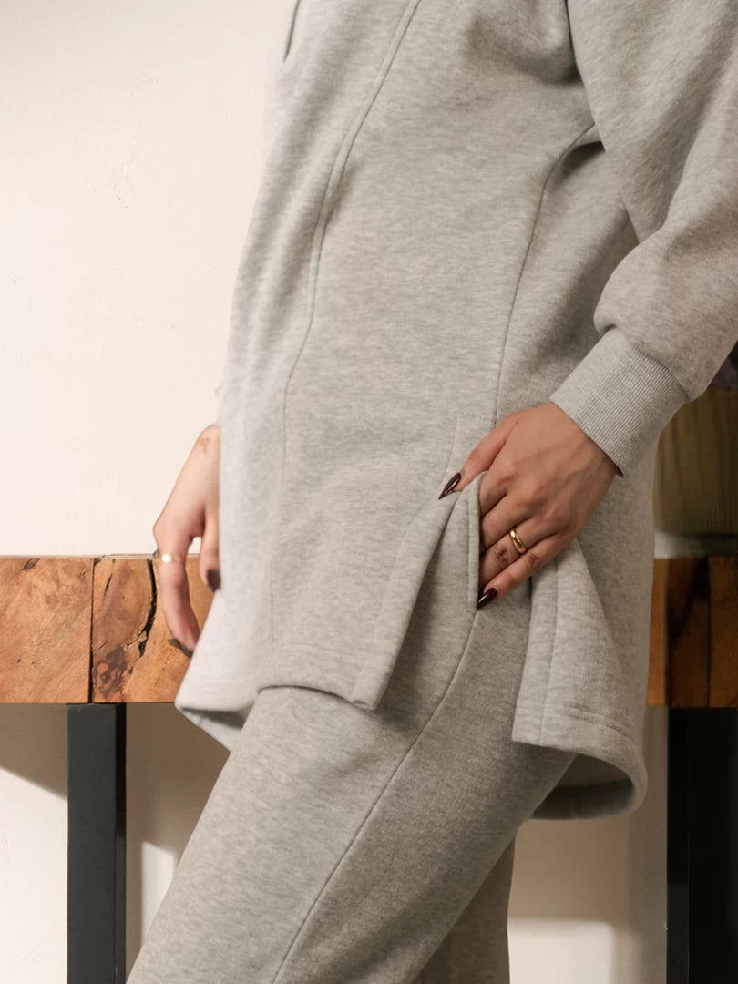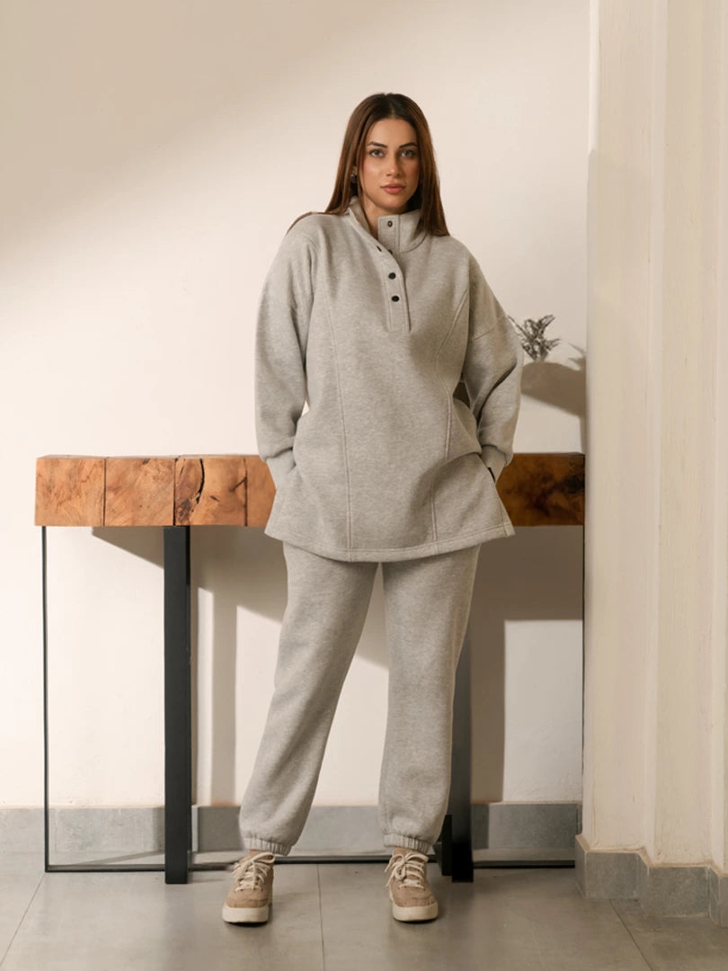 Keep warm this winter in style with the Nina Stand Neck Collar Matching Set. The stand neck collar with snap button closure provides both warmth and style, while the high quality fleece offers ultimate comfort. With a loose fit, long length and rib hem sleeve detail, this set is perfect for a fun and cozy winter.