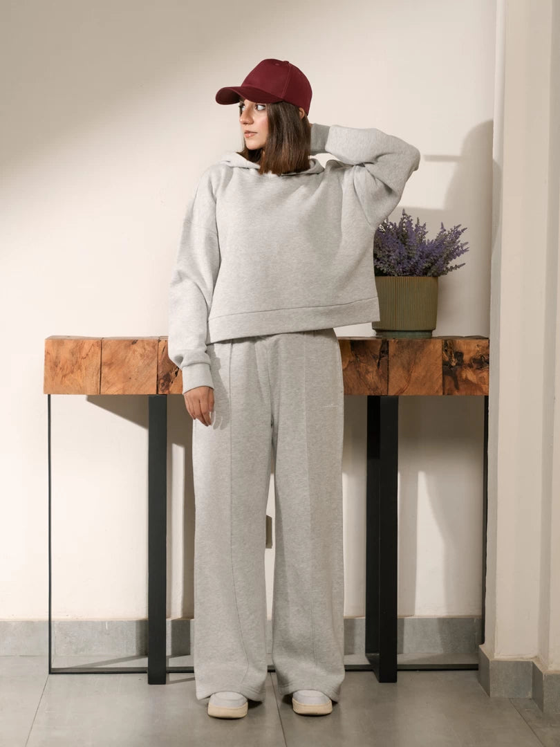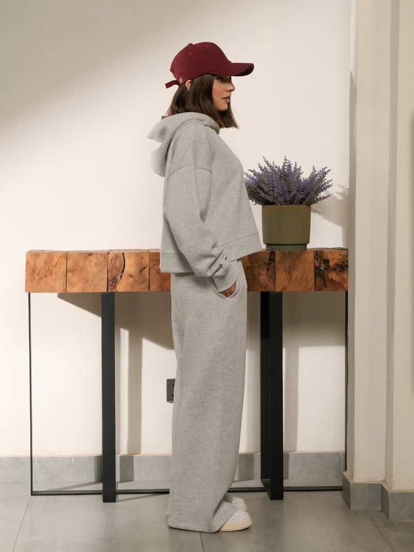 Wrap yourself in comfort and style with our Soho Hoodie Matching Set! Made from a soft and luxurious fabric, this set features a boxy hoodie and wide leg trousers with a unique waistband detail and rib finish sleeves. Perfect for winter, stay cozy and chic. Upgrade your wardrobe now!