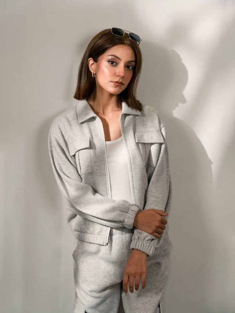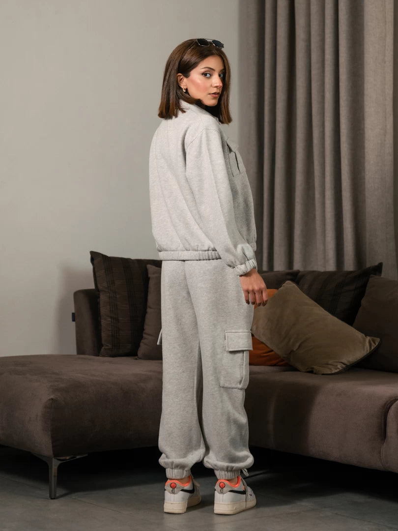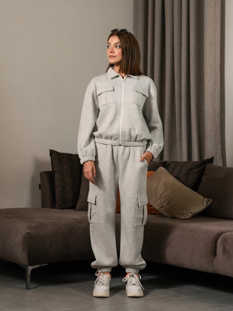 Stay stylish and cozy this winter with our Varley Zip Up Matching Set. This exclusive set features a cool jacket with front pockets and collar, plus cargo trousers with side pockets. You can wear the zip-up jacket open or closed, offering versatility and multiple ways to style. Upgrade your winter wardrobe now!
